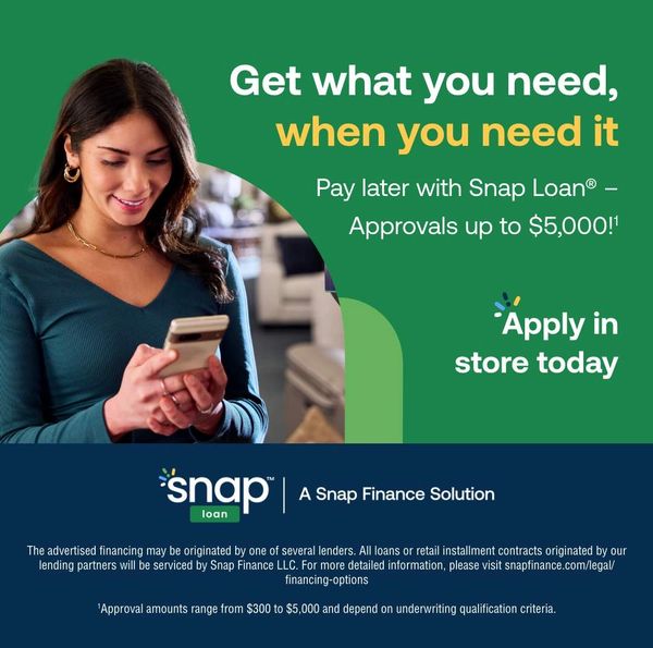 Snap Finance offers consumer loans to all credit types, but it especially helps those who’ve had credit challenges in the past and may not qualify for traditional financing. Snap’s application is EASY, and you’ll find out in seconds if you’ve been approved.